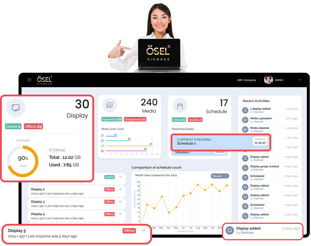Monitor and manage your digital signage content effortlessly with the OSEL Signage Dashboard.